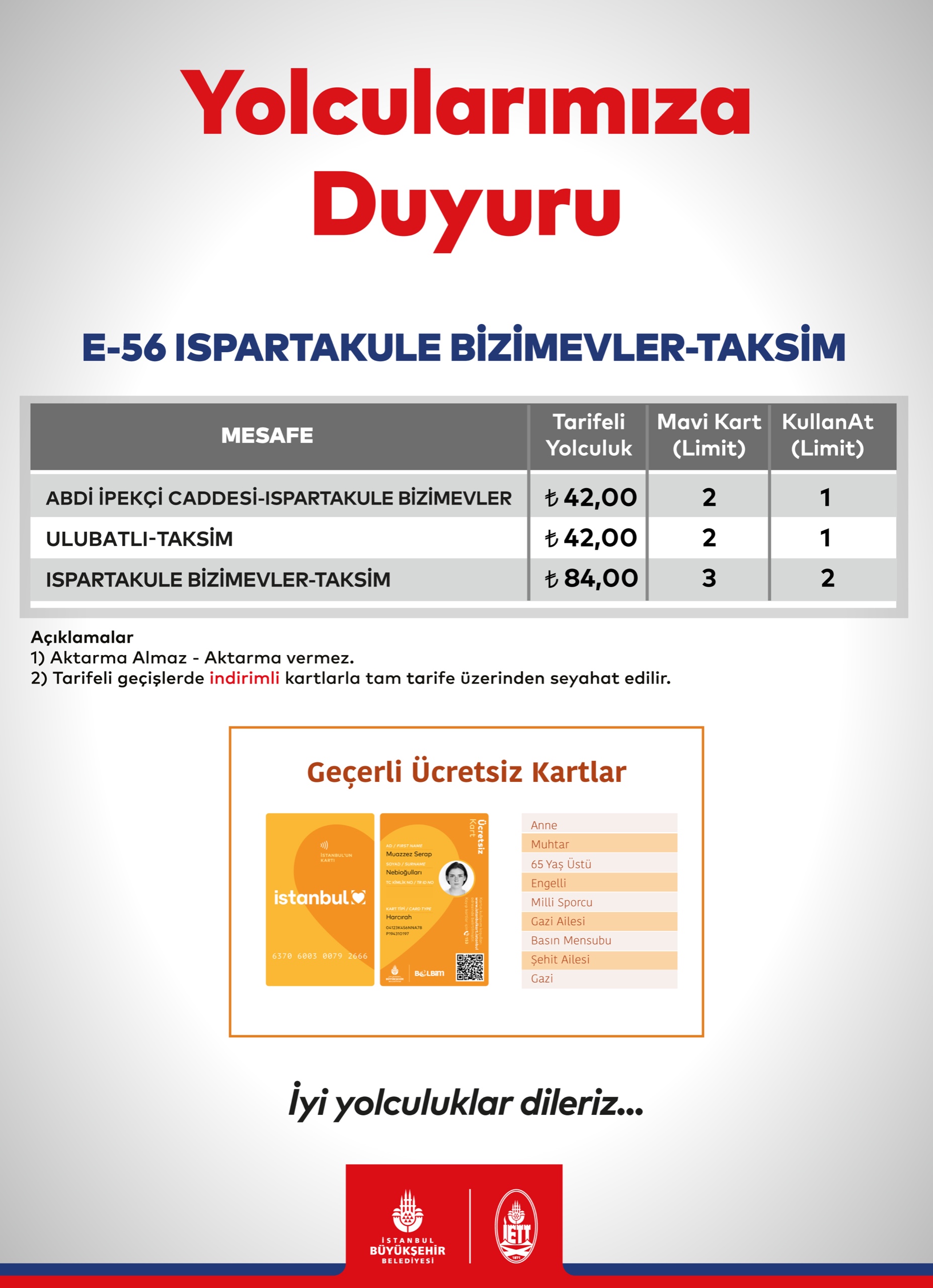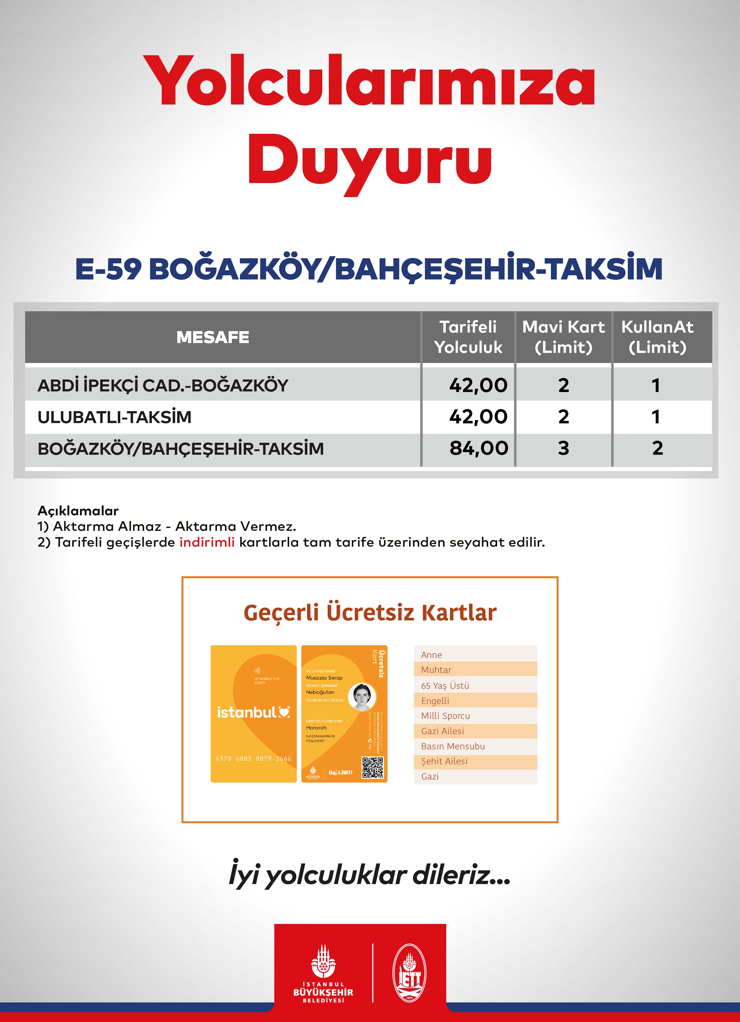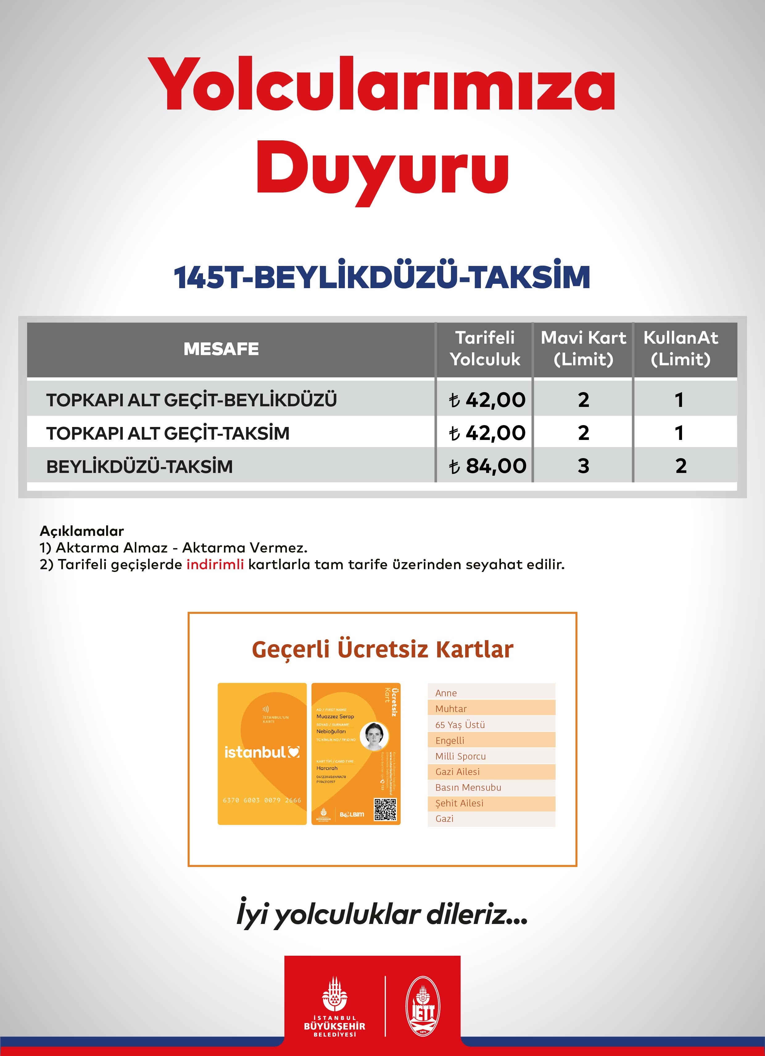 İETT Toplu Ulaşım Ücret Tarifesi