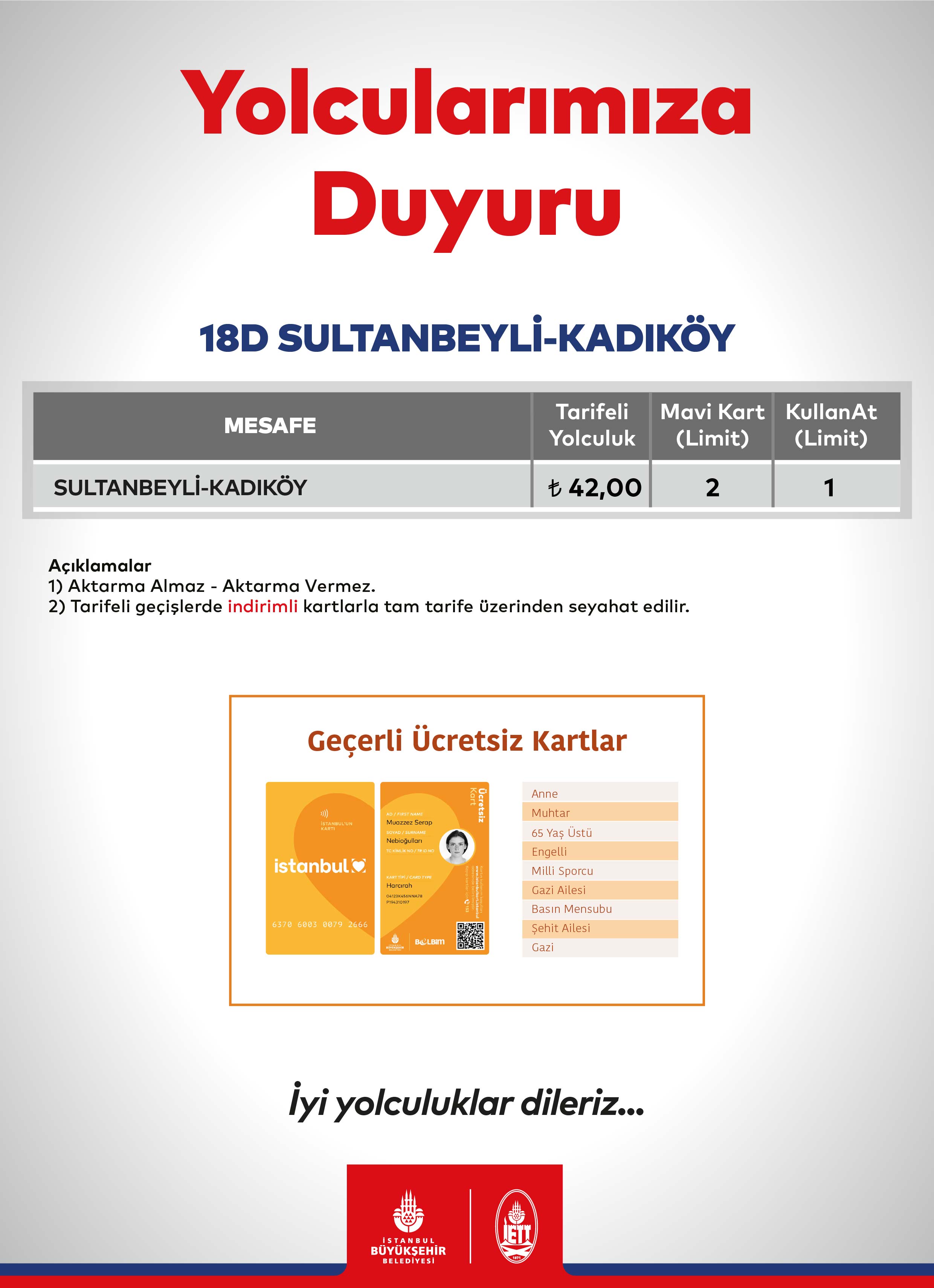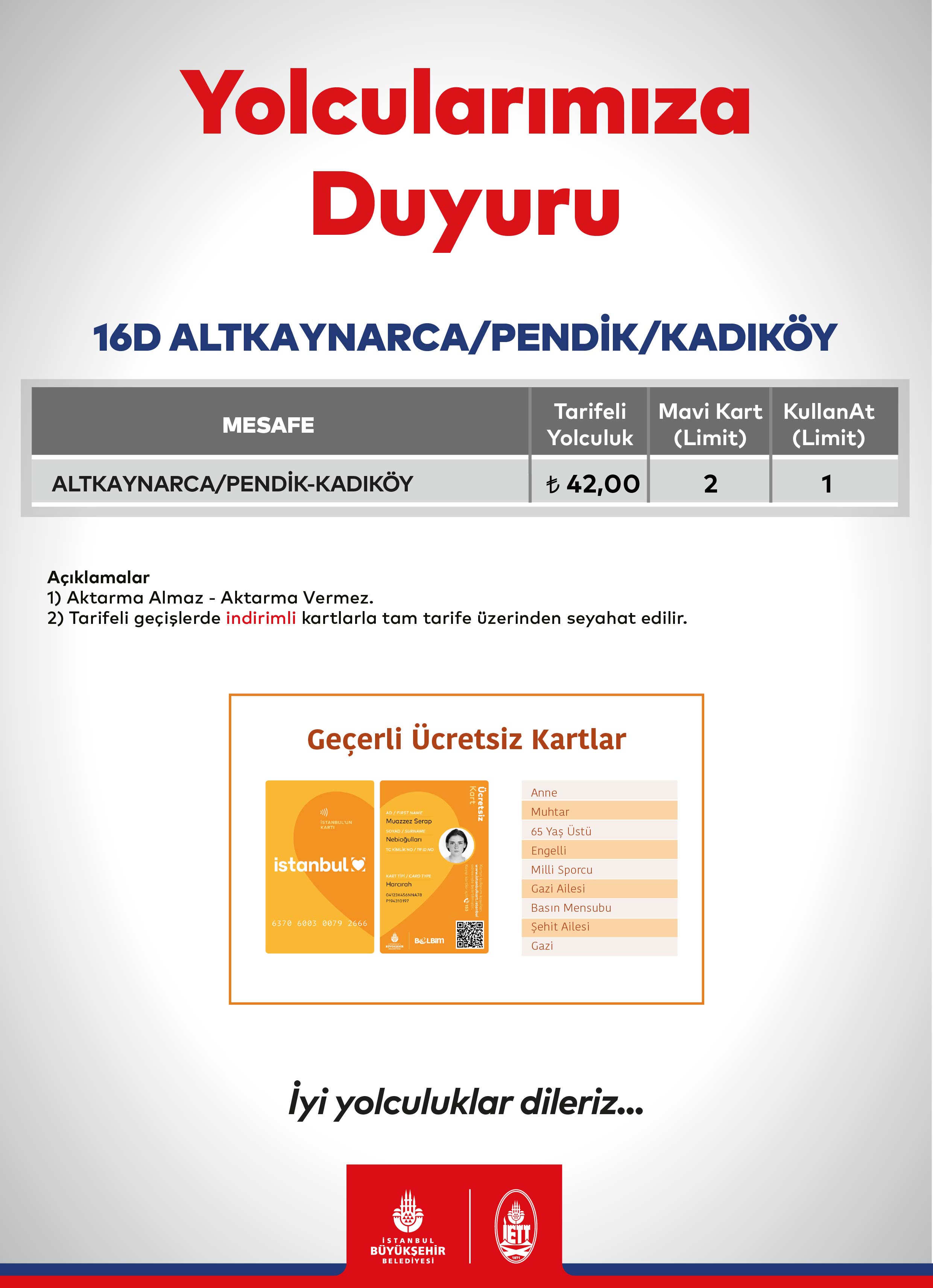 Çift Katlı Ulaşım Ücret Tarifesi